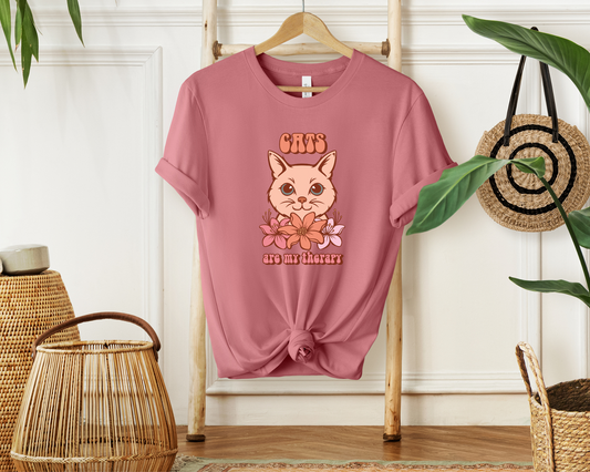 Regular price $21.99 USDRegular priceUnit price perSale price $21.99 USDCats Are My Therapy Crewneck T-shirt, Mauve