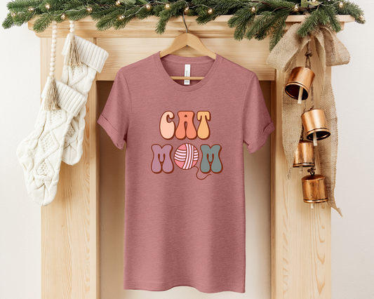 Cat Mom Crewneck T-shirt, Heather Mauve