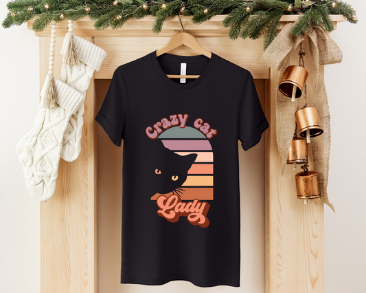 Crazy Cat Lady Crewneck T-shirt, Black