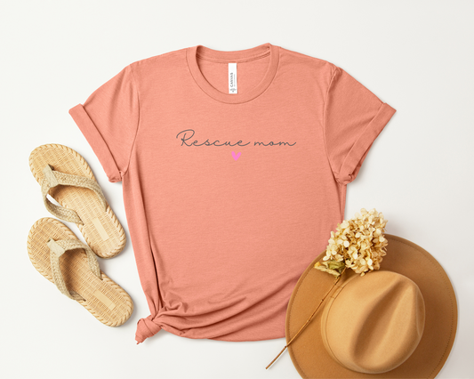Rescue Mom (Heart) T-shirt, Heather Sunset