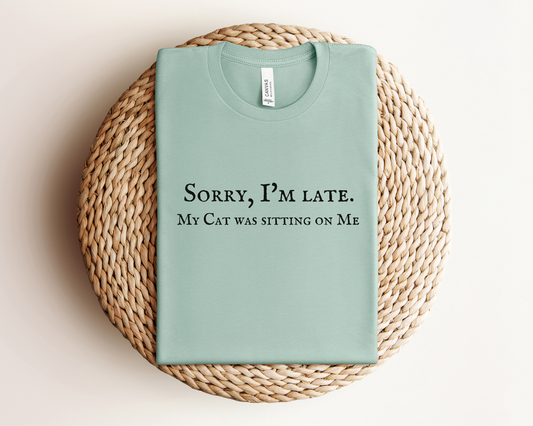 Regular price $19.99 USDRegular priceUnit price perSale price $19.99 USDSorry I’m Late. My Cat Was Sitting On Me Crewneck T-shirt, Dusty Blue