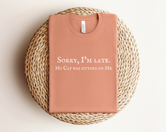 Regular price $17.99 USDRegular priceUnit price perSale price $17.99 USDSorry I’m Late. My Cat Was Sitting On Me Crewneck T-shirt, Terracotta