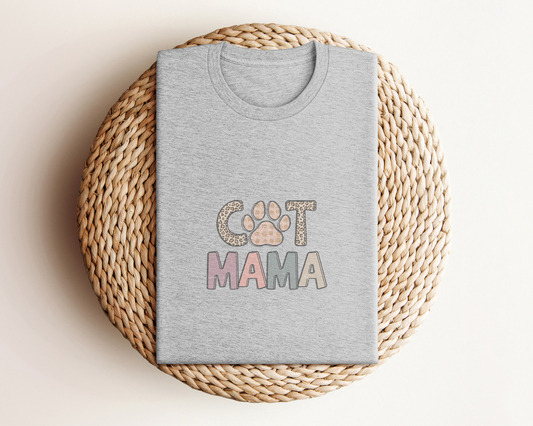 [Clearance 20%] Cat Mama Crewneck T-shirt, Heather Grey