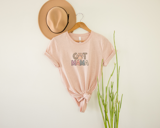 [Clearance 20%] Cat Mama Crewneck T-shirt, Heather Peach