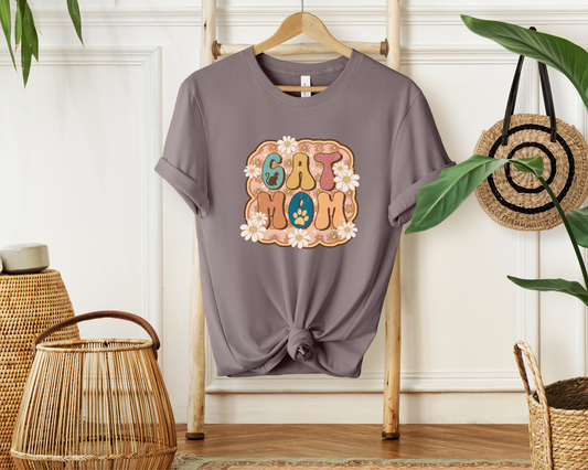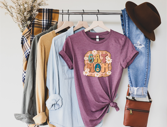[Clearance 10%] Cat Mom Crewneck T-shirt, Heather Maroon