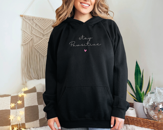 [Clearance 10%] Stay Pawsitive Hoodie, Black
