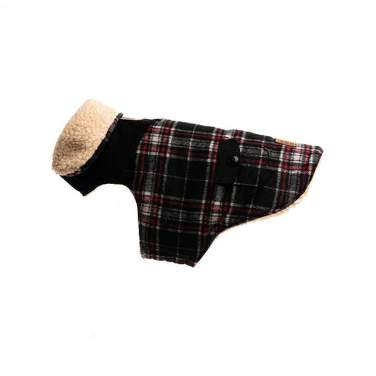 Sherpa-Lined Dog Harness Coat - Brown & White Plaid