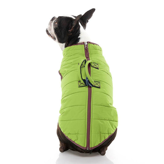 Sherpa-Lined Dog Harness Coat - Blue & Green Plaid