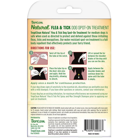 TropiClean Natural Flea & Tick Spot-On Treatment for Medium Dogs(4ct)