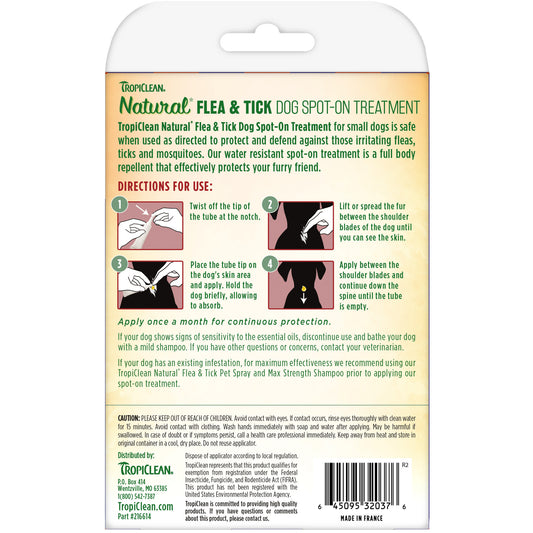 TropiClean Natural Flea & Tick Spot-On Treatment for Small Dogs(4ct)
