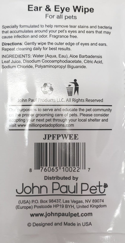 John Paul Pet Ear Eye Wipes Travel 1pc