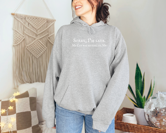 Sorry I’m Late. My Cat Was Sitting On Me Hoodie, Sport Grey