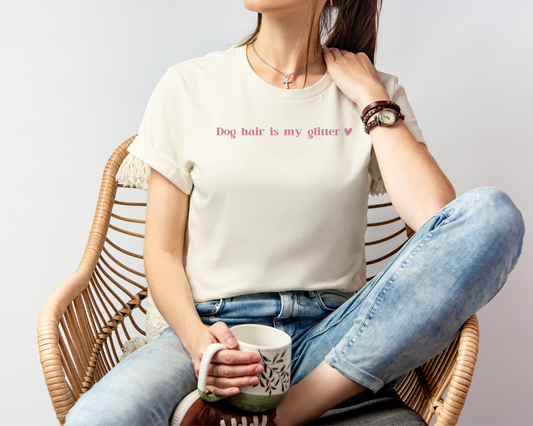 Dog Hair Is My Glitter Crewneck T-shirt, Natural