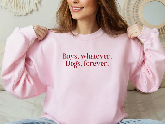 Boys Whatever Dogs Forever Sweatshirt, Light Pink