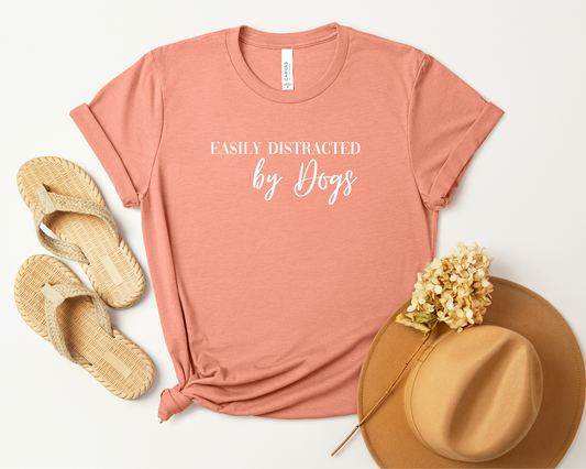 Regular price $19.99 USDRegular priceUnit price perSale price $19.99 USD[Clearance 20%] Easily Distracted by Dogs Crewneck T-shirt, Heather Sunset
