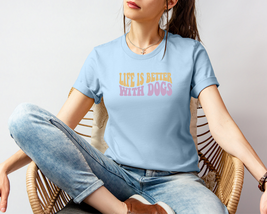 Regular price $19.99 USDRegular priceUnit price perSale price $19.99 USD[20% OFF] Life Is Better With Dogs Crewneck T-shirt, Light Blue *