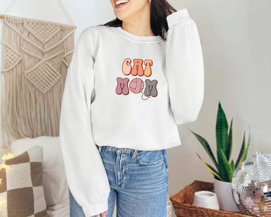 Cat Mom Yarn Crewneck Sweatshirt, White