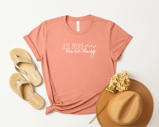 Regular price $19.99 USDRegular priceUnit price perSale price $19.99 USDLess People More Dogs Crewneck T-shirt, Heather Sunset