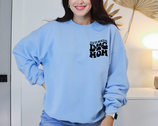 Anti Social Dog Moms Club Sweatshirt, Light Blue