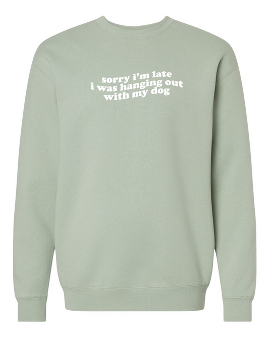 Regular price $47.99 USDRegular priceUnit price perSale price $47.99 USD[Clearance 10%] Sorry, I'm Late...With My Dog Sweatshirt, Dusty Sage