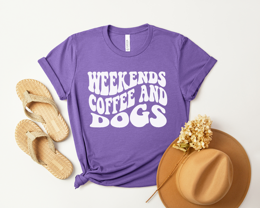 Weekends, Coffee and Dogs T-shirt, Heather Team Purple