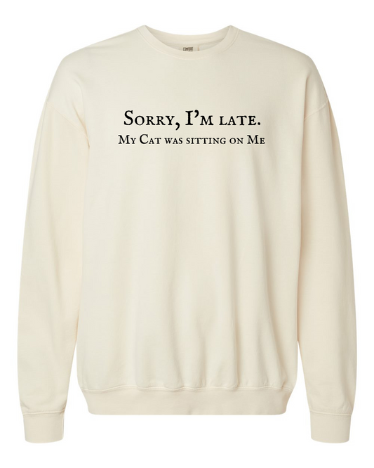 Regular price $49.99 USDRegular priceUnit price perSale price $49.99 USDSorry I’m Late. My Cat Was Sitting On Me Lightweight Fleece Crewneck Sweatshirt, Ivory