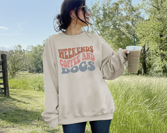 Weekends, Coffee And Dogs ReFlex Fleece Sweatshirt, Bone