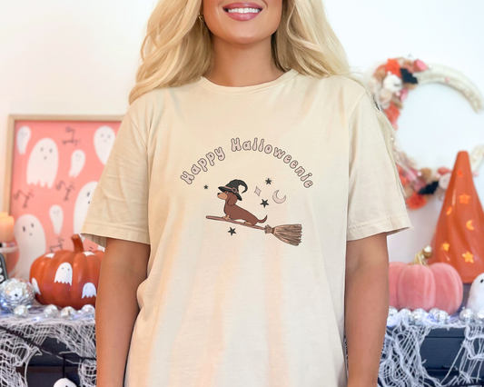 Regular price $21.99 USDRegular priceUnit price perSale price $21.99 USDHappy Halloweenie Crewneck T-shirt, Soft Cream