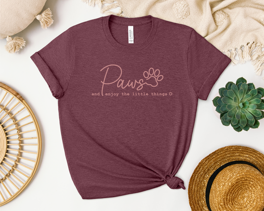 Regular price $19.99 USDRegular priceUnit price perSale price $19.99 USDPaws and enjoy the little things Crewneck T-shirt, Heather Maroon