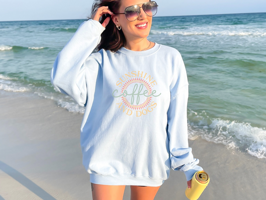 Regular price $37.99 USDRegular priceUnit price perSale price $37.99 USD[30% OFF] Sunshine, Coffee & Dogs Crewneck Sweatshirt, White