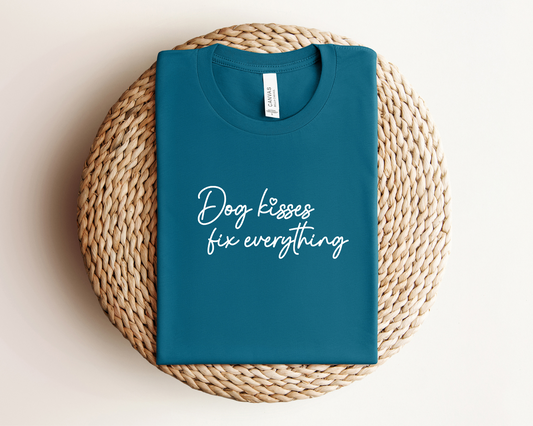 Dog Kisses Fix Everything T-shirt, Deep Teal