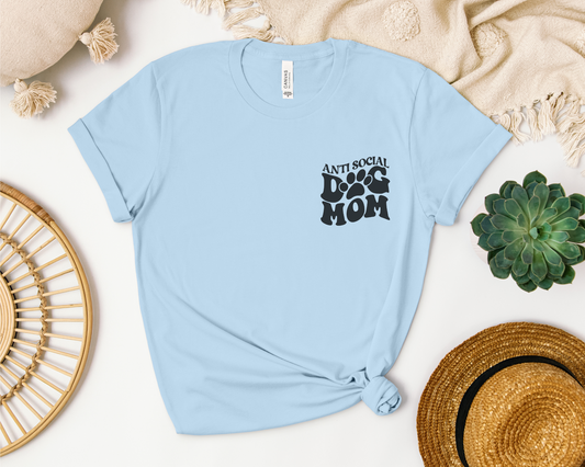 Regular price $17.99 USDRegular priceUnit price perSale price $17.99 USDAnti Social Dog Mom Crewneck T-shirt, Baby Blue