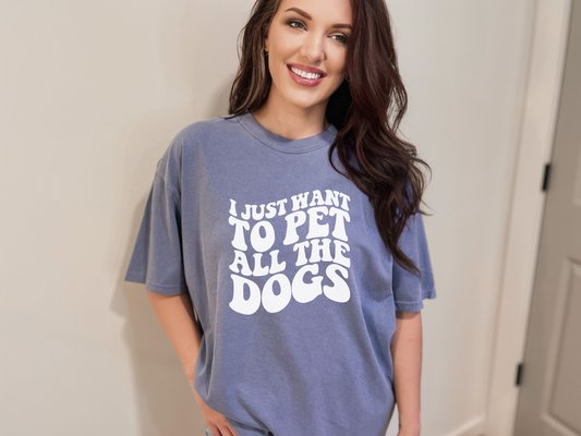 Regular price $27.99 USDRegular priceUnit price perSale price $27.99 USD[Clearance 20%] I Just Want To Pet All The Dogs Printed T-shirt, Blue Jean