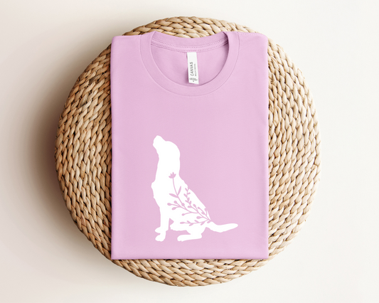 [Clearance 20%] Floral Crewneck Dog Lover T-shirt, Lilac