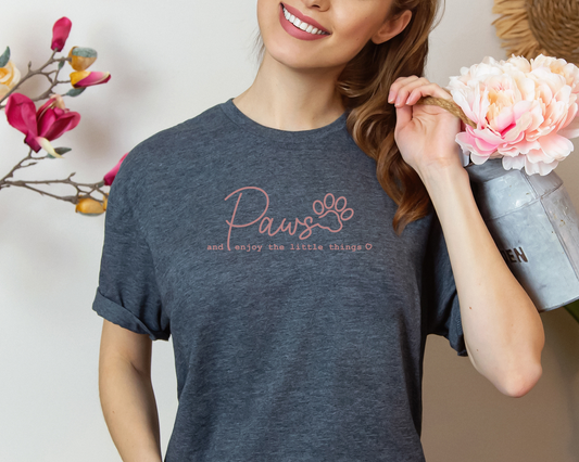 Regular price $19.99 USDRegular priceUnit price perSale price $19.99 USDPaws and enjoy the little things Crewneck T-shirt, Heather Dark Grey