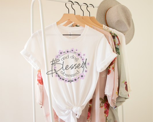 [Clearance 20%] Blessed and Dog Obsessed Crewneck T-shirt, White