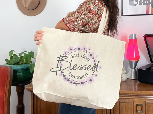 Canvas Tote Jumbo - Blessed and dog obsessed