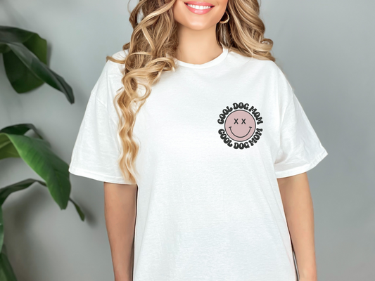 Regular price $14.99 USDRegular priceUnit price perSale price $14.99 USDCool Dog Mom Smile Cotton T-shirt, White