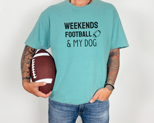 Regular price $27.99 USDRegular priceUnit price perSale price $27.99 USDWeekends, Football & My Dog T-Shirt, Chalky Mint