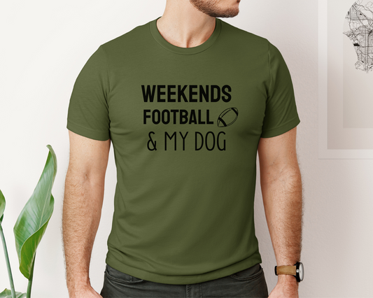 Weekends, Football & My Dog Crewneck T-shirt, Olive