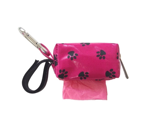 Duffel Dog Poop Bag Holder with 1 Refill Roll - Pink with Black Paw