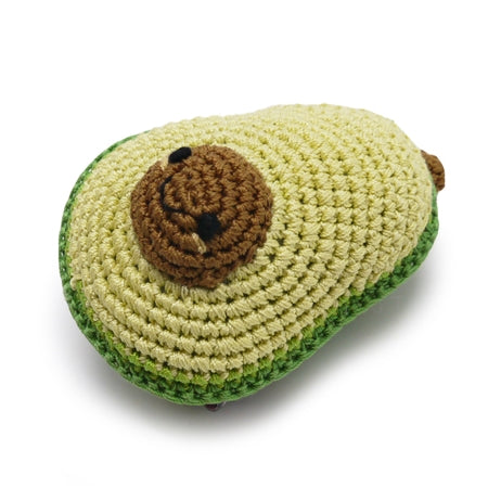 Avocado designed dog crochet toy. Handmade interlace cotton thread, designed to be flexible, durable, and improves dental health by removing deposits of calculus. Add all that with a squeaky inside means hours of fun! Measures about 3.5 inches tall.