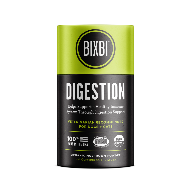 Poor digestion can be the result of a weakened immune system. And that’s why BIXBI Digestion is made with organic mushrooms containing alpha and beta glucans, polysaccharides and terpenes that help support healthy GI enzymes. This blend is especially recommended for pets with gastrointestinal disturbances—like gas, bad breath and loose stool due to environmental stress or changes in diet. By supporting healthy GI enzymes, BIXBI Digestion encourages normal inflammatory responses and supports your pet’s entire immune system.