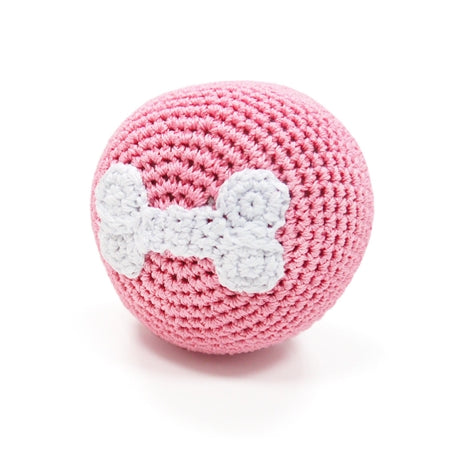 Handmade interlaced cotton thread, designed to be flexible, durable, and improves dental health by removing deposits of calculus. Add all that with a squeaky inside means to hours of fun! Measures about 3 inches in diameter.