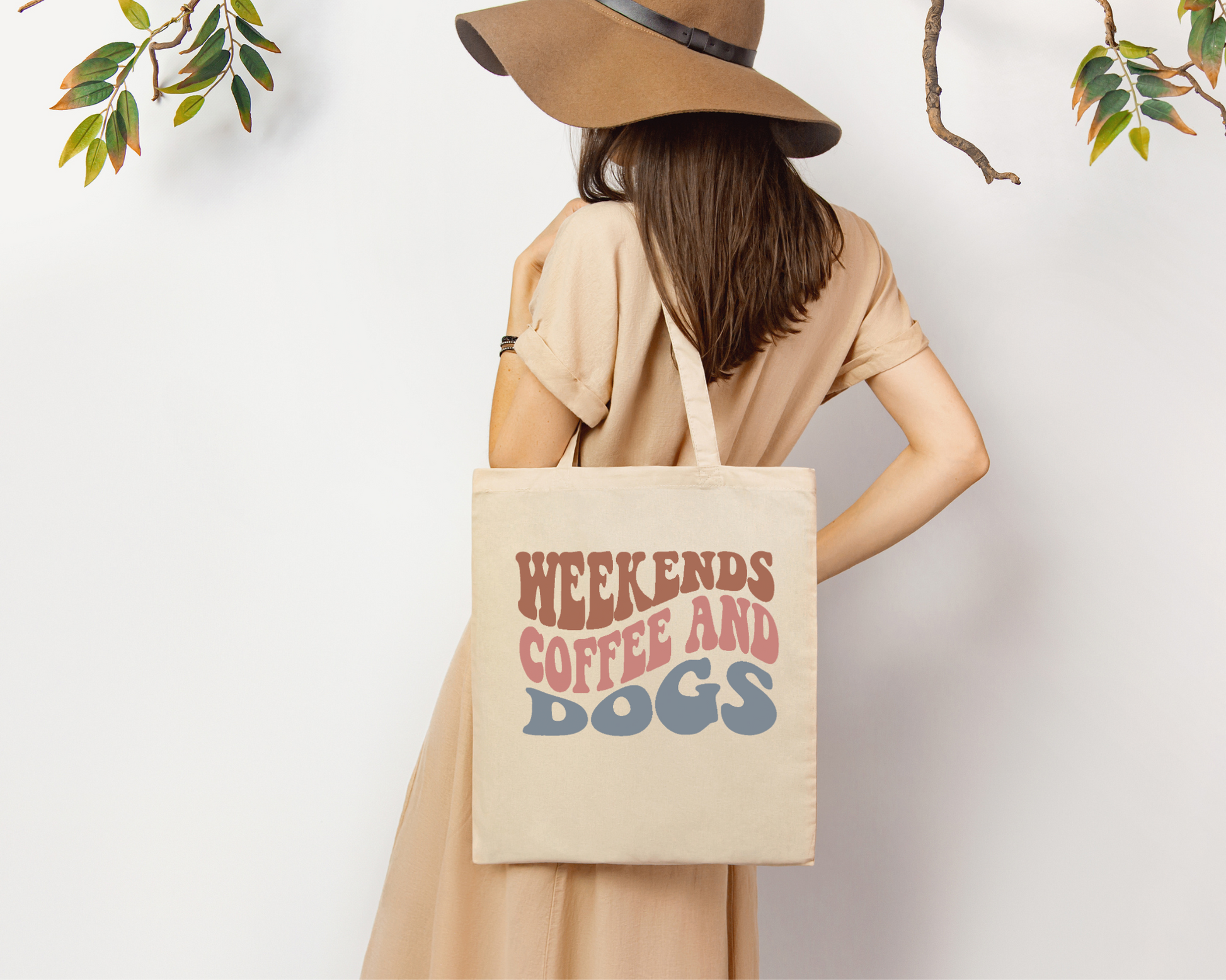 Canvas Cotton Tote - Weekends, Coffee And Dogs