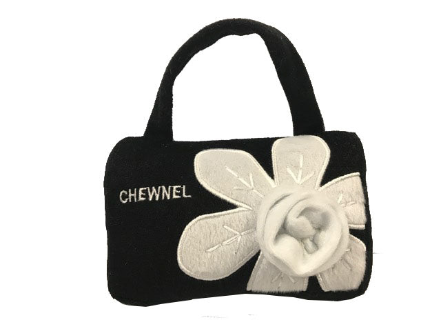 The handbag every woman wants is now the toy every dog needs. Plush exterior with a squeaky that drives dogs crazy. Every Pampered Pup should have one. This toy measures about 5" x 5" x 4".