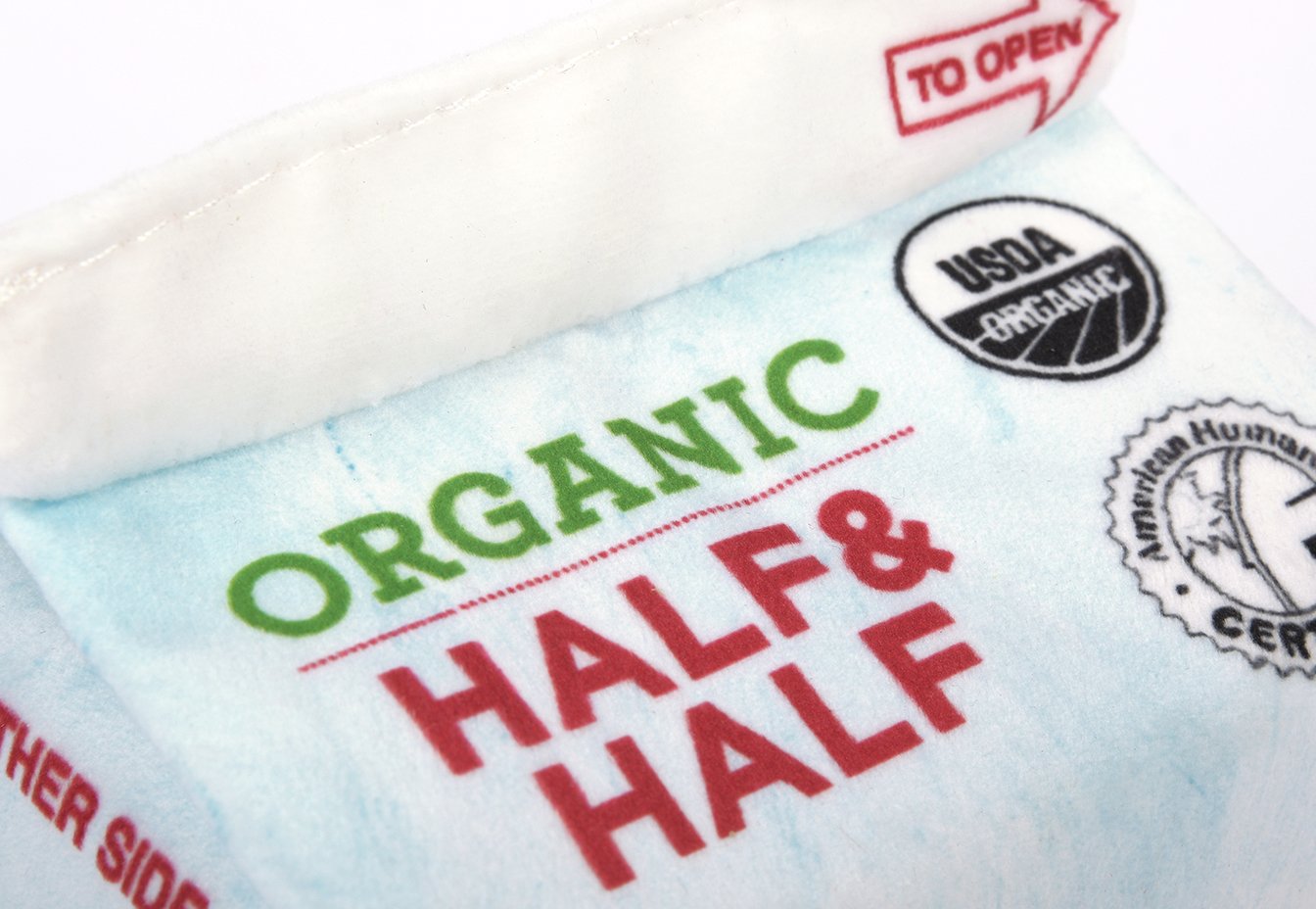 It’s time to play! But first, coffee. If coffee helps get you out of bed in the morning, then you and your furry friend are going to love waking up to this playful coffee companion we created in collaboration with fellow B Corp Clover Sonoma! This tasty half & half carton dog toy is shockingly identical to the real thing, except that our milk box plush toy includes an enticing squeaker inside to get your furry friend’s day started off on the right paw.