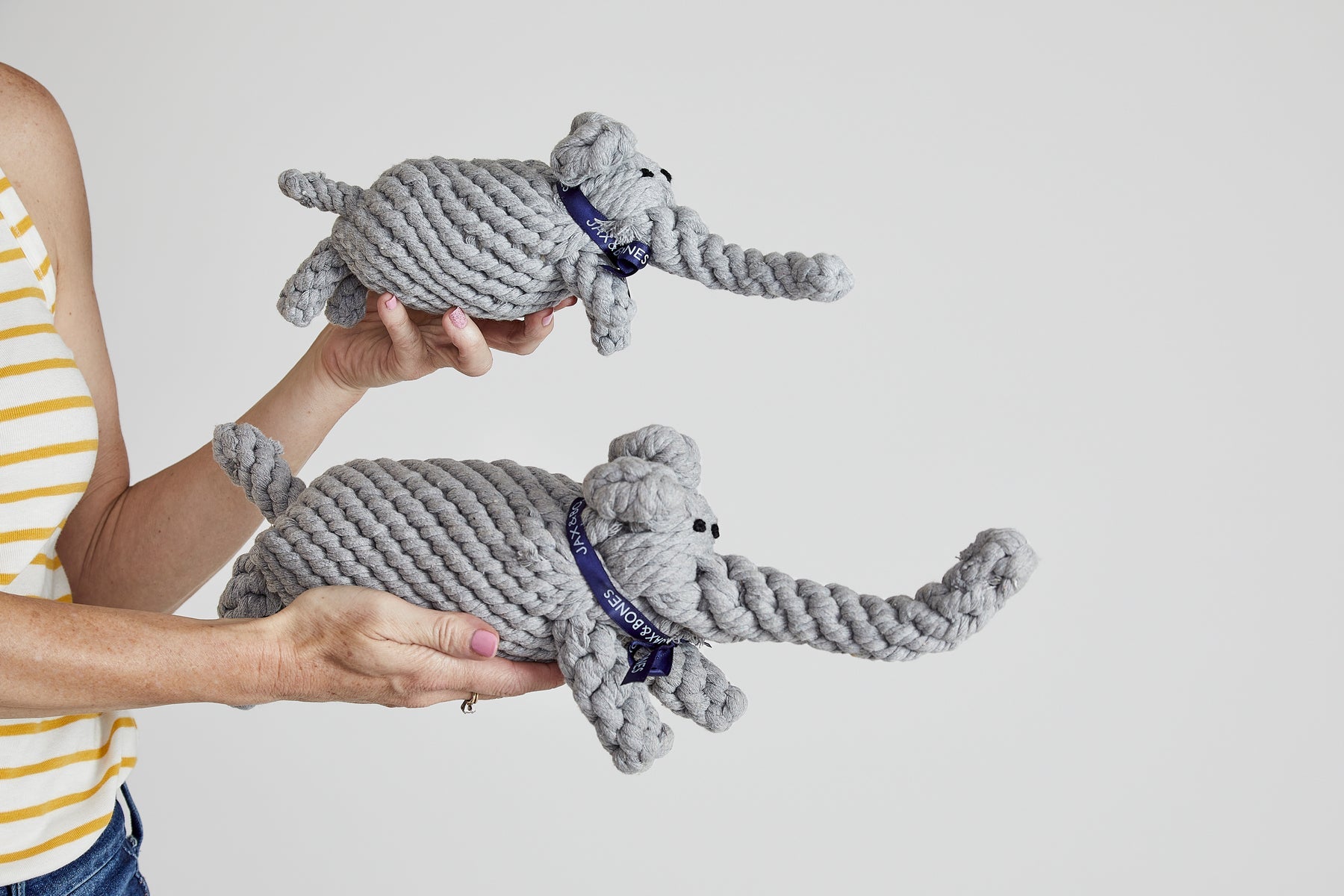 - Hand-tied cotton rope chew toys.