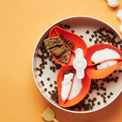 The Bougainvillea SPIN bowls, level, EASY, by PetDreamHouse are a dynamic slow feed pet bowl that turns mealtime for your dog or cat into fun and interactive feeding. SPIN bowls encourage sniffing, licking, and problem-solving during meals, which naturally slow eating and prevent choking, bloating, and excessively fast eating. Each bowl has a multi-functional center puzzle element that can be adjusted in height to offer variation or flip it over to create a whole new option. Each bowl has four large anti-skid rings to provide high stability.
