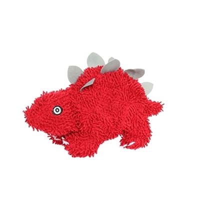 Mighty® Microfiber Ball Stegosaurus - Minimal Stuffing! Squeaker balls replace most of the stuffing in the body. Soft edges won't hurt gums.  Machine washable (air dry) and it floats!  These toys may seem plush on the outside, but all the durability features are internal making them soft, yet Mighty® strong.